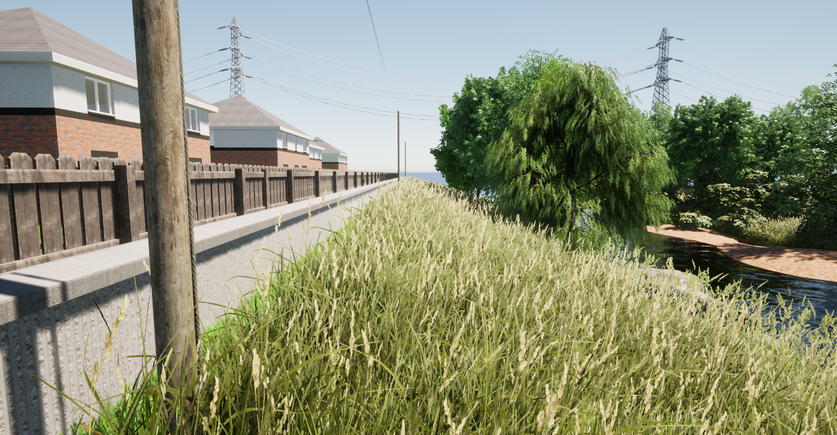 The following images were prepared to aid the understanding of the proposed flood defences. The locations aren't specific but give an indication of the general relationship between residential property, the flood defences and the watercourse.